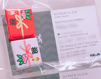 お正月用のメッセージカード、ギフト、オリジナルお煎餅をご用意し、お待ちしております。
