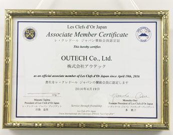アウテックはそのLes Clefs d'Or Japanの賛助会員として申請し、4月の総会で認められました。