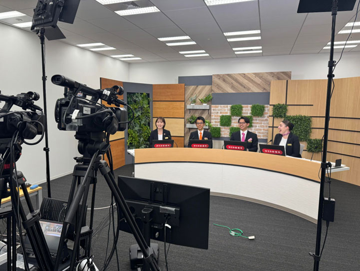 2024年12月初旬にアウテックから佐藤プランナー、市村プランナー、中村プランナー、そして永友の4名が歌舞伎座マイナビオフィスでの動画撮影に参加しました。事前に有明オフィスで台本の読み合わせとリハーサルを行い、いざ、本番へ!今年は「会社説明会」の動画に加え、「よくある質問にお答えするQ&A」の動画も追加し、2本の収録を行いました。