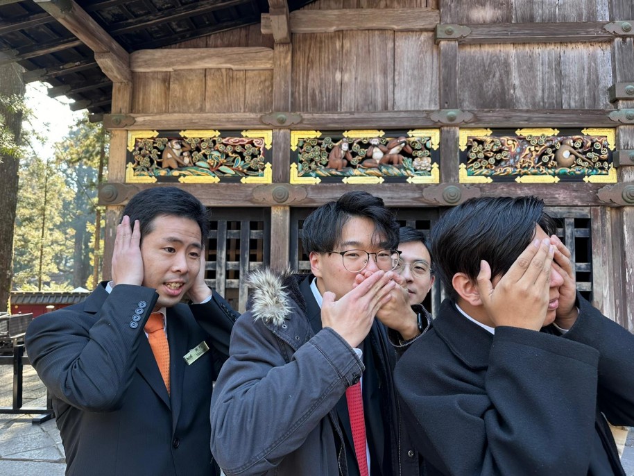 「今まで二回くらい何も知らないまま観光してきましたが、今日は研修の中で歴史などを踏まえて、前より日光観光を楽しめました!ガイドの重要さを感じました。研修前に変な動物~と思いましたが、今日で昔の人象見たことないから、人の話を聞いてイメージで描いた二匹象をもう一度見た時、そうなんだ~面白いなと思いました。 」