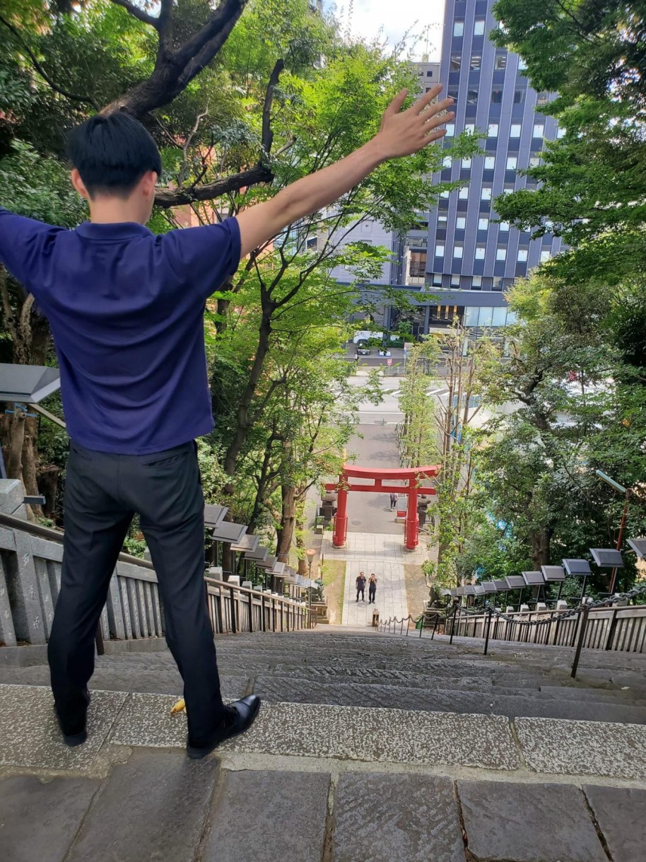 愛宕神社では、88段の階段有名(出世の石段)を参加者全員で駆け上がりました。