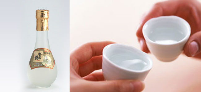 昨日に100均で準備したおちょこをゲストにお渡しし、私がお二人にお注ぎし