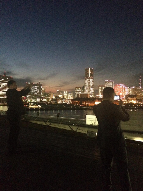 冬の乾燥した空間で見る夜景は最高でした。クリスマス間近の横浜はカップルが多く、その中で、はしゃぐ男子3人は異様な光景で、周りの雰囲気を壊さないようにと思いながら、その気持ちは大桟橋から出航したばかりの客船ともに波の上に広がる暗闇へと吸い込まれ、はしゃがずにはいられない自分がいました。