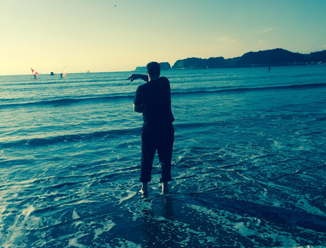 子供のようにはしゃぎ貝殻を集めるゲスト、素足で海にかけだすゲスト、そして願いを込めて投げたコインは波に吸い込まれて行きました。希望とコインだけを由比ヶ浜に残し、横浜に向かいました。