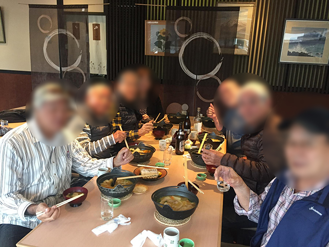 その後は、事前に添乗員さんからランチのご相談を受けていたので、やはり山梨といえば「ほうとうでしょう!」ということで、快諾頂きご案内。山中湖湖畔の浅間茶屋にご案内。