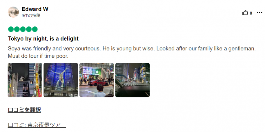 観光ガイドデビューを終えた後も、研修を続け、さらなる観光案件を担当し、ゲストより素晴らしいレビューを頂いております。★★★★★<5/5>