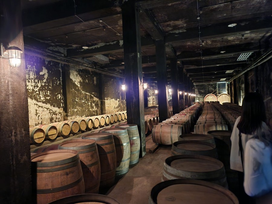 続いて向かったのは、「サントリー登美の丘ワイナリー」です。ここでは団体ツアーに参加し、サントリーワインの歴史や日本のワイン造りについて学びました。ヨーロッパ市場への進出を目指す中で、甲州ブドウのDNA調査を行った結果、ヨーロッパと中国の品種の交配種である可能性が高いという興味深いお話に、ゲストのお二人は深く聞き入っていました。